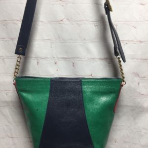 VINTAGE LEATHER COLOR-BLOCK DESIGN SHOULDER BAG PURSE W/ GOLD HARDWARE