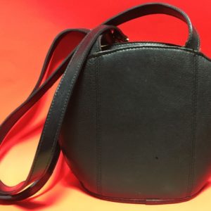 VINTAGE 1980S-90S LEATHER ROUND CROSSBODY BAG W/ LION CREST HARDWARE