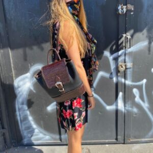 BRIGHTON LEATHER BACKPACK SILVER BUCKLE ALLIGATOR FLAP AND BOTTOM