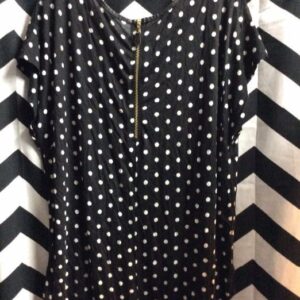 TOP POLKA DOT SHORT SLEEVE LEATHER TRIM NECK ZIPUP