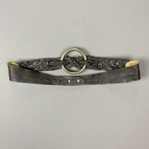 BRAIDED BLACK LEATHER FOLDOVER SILVER STUD RING BELT