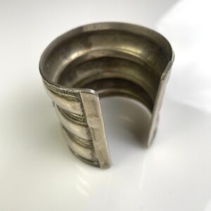 DECORATIVE TRIBAL TRIPLE WIDE SILVER CUFF BRACELET SEMI-PRECIOUS STONE INLAY
