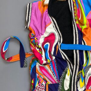 AMAZING! 100% SILK PSYCHEDELIC PRINT SLEEVELESS TERRY CLOTH LINED SLEEVELESS ROBE