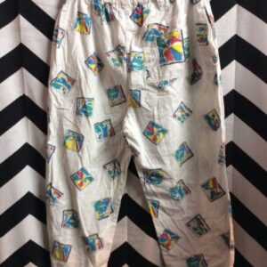 1980’S BEACH PANTS – CROPPED – COTTON – PRINTED SQUARES DESIGN