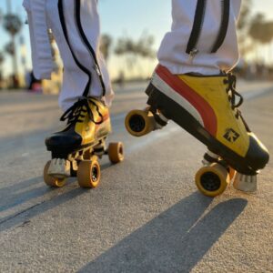 AMAZING VINTAGE 1970S RETRO STRIPED LACEUP ROLLER SKATES