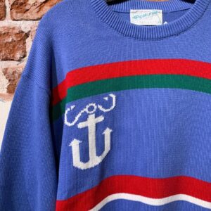 RETRO KNIT STRIPED ANCHOR DESIGN CREW NECK SWEATER