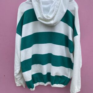 *AS-IS* 1990S THICK STRIPED HOODED SWEATSHIRT W/ QUARTER BUTTON UP FRONT AS-IS