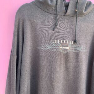 AS-IS FADED & DISTRESSED SUPER OVERSIZED LEGENDARY HARLEY DAVIDSON OVERSIZED HOODIE SWEATSHIRT W/ FLAME GRAPHICS ON ARMS CONWAY NH
