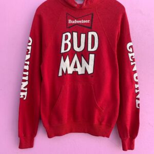 RARE & ORIGINAL BUD MAN BUDWEISER BEER HOODIE SWEATSHIRT WITH EYES PRINTED ON HOOD