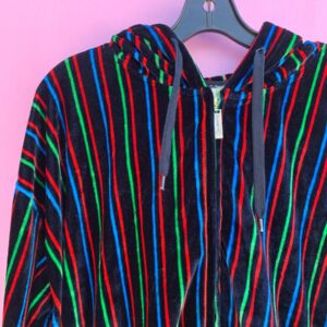 LATE 1990S OVERSIZED VELVET STRIPED ZIP UP HOODED SWEATSHIRT