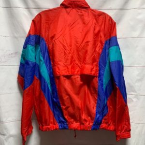 1990S MULTICOLORED NEON GEOMETRIC DESIGN DRAWSTRING HOODIE WINDBREAKER