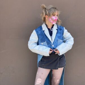 RETRO HOODED 1970S EMBROIDERED MICKEY MOUSE VERTICAL STRIPE SLEEVE CINCH-TIE BOTTOM JACKET