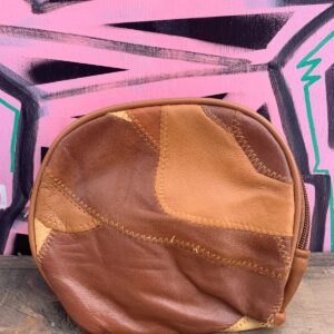 RETRO BROWN LEATHER PATCHWORK ZIPPER POUCH