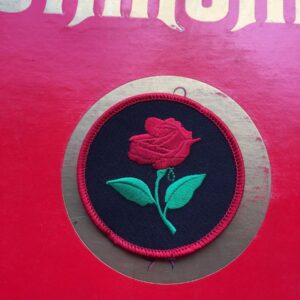 ROSE BLACK RED EMBROIDERED CIRCULAR PATCH
