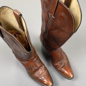 GORGEOUS!! WELL OILED CHOCOLATE LEATHER FULLY EMBROIDERED POINTED TOE COWBOY BOOTS