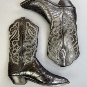 WOW! STUNNING! POINTED TOE, CROC EMBOSSED, SCALLOPED SHAFT DECORATIVE COWBOY BOOTS