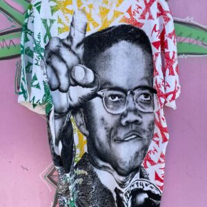 *AS-IS* 1990S DEADSTOCK AOP ALL OVER PRINT MALCOM X T-SHIRT RASTA COLORS