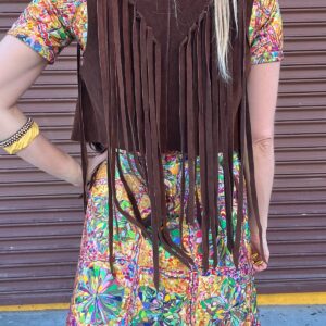 RAD! CROPPED CHOCOLATE BROWN SUEDE VEST SUPER LONG FRINGE DETAILING