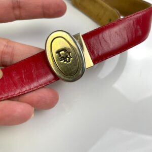 *AS-IS* RED LEATHER COWHIDE SKINNY BELT GOLD OVAL DIOR LOGO BUCKLE *DISTRESSED