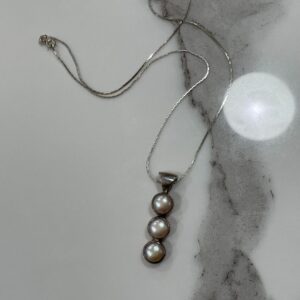 TRIPLE MOTHER OF PEARL PENDANT NECKLACE STERLING SILVER SETTING & CHAIN *HALLMARKED