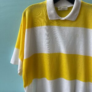 SO RAD! 1980S CROPPED YELLOW STRIPED COLLARED T-SHIRT SINGLE STITCHED
