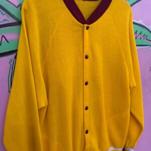 *AS-IS* RAD! 1960S KNIT SNAP BUTTON VARSITY TRACK JACKET STRIPED CUFFS & HEM