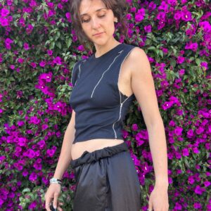 *AS-IS* LOVE THIS! 1980S-90S SLEEVELESS COTTON MULTI ZIPPER TRIMMED TOP- FUNCTIONAL ZIPPERS!