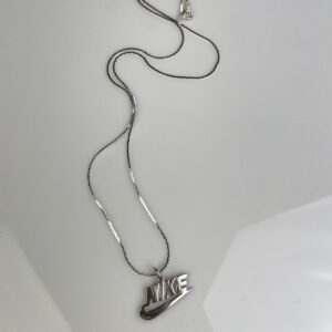 NIKE LOGO PENDANT ON SNAKE CHAIN NECKLACE SOLID BRASS SILVER PLATED