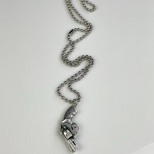 MINIATURE SOLID BRASS REPLICA PISTOL GUN REVOLVER CHARM NECKLACE, HEAVY BALL CHAIN