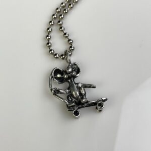 SILVER PLATED SOLID BRASS CASTED SKATE RAT PENDANT NECKLACE W/ LARGE BRASS BALL CHAIN