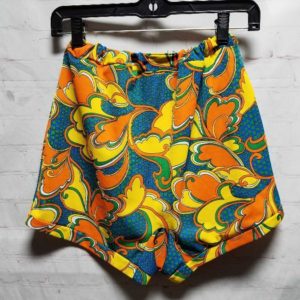 RETRO 1960S-70S PSYCHEDELIC PRINT DOLPHIN SWIM SHORTS W/ DRAWSTRING WAIST