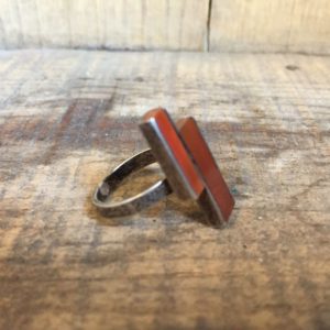 RETRO GEOMETRIC STERLING SILVER ORANGE RESIN VINTAGE RING