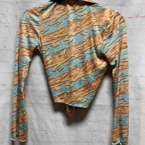 RETRO LS BD TIE FRONT POLY SWIRL PRINTED BLOUSE