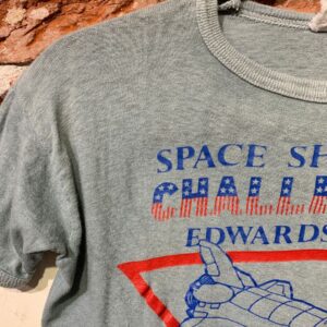 SMALL FIT DOUBLE KNIT MAY 1985 SPACE SHUTTLE CHALLENGER AMERICAN FLAG LETTERING GRAPHIC T-SHIRT