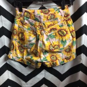 DENIM SHORTS – SUNFLOWER PATTERN – CUFFED