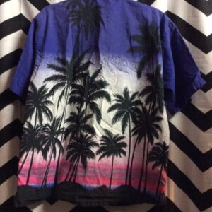 SS BD Hawaiian Shirt Purple Black Palm Trees Pattern