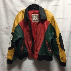 RASTA COLOR BLOCK GENUINE LEATHER JACKET EIGHT BALL – AS IS