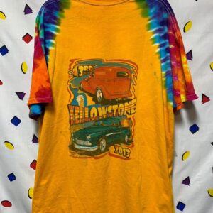 YELLOWSTONE ROD RUN T-SHIRT HOT ROD BACK GRAPHIC TIE DYE SLEEVES AS-IS