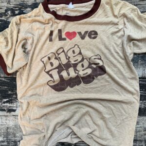 I LOVE BIG JUGS GRAPHIC RINGER T-SHIRT AS-IS