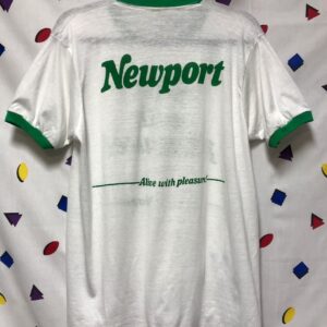 1980S NEWPORT ALIVE WITH PLEASURE GRAPHIC RINGER TEE T-SHIRT COTTON POLY BLEND OLD SCHOOL CIGARETTE MEMORABILIA