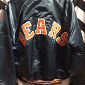 CHALKLINE BASEBALL STYLE JACKET – SATIN – CHICAGO BEARS – APPLIQUED LETTERS ACROSS BACK