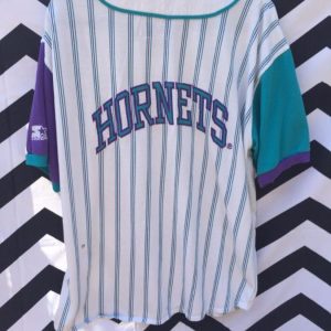 STARTER BASEBALL JERSEY, COTTON, CHARLOTTE HORNETS W/EMBROIDERED LOGO & LETTERING, PINSTRIPED FABRIC
