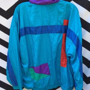 WINDBREAKER W/80’S AIRBRUSH STYLE PRINT & COLOR BLOCK DESIGN