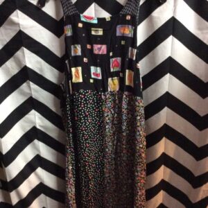 1990’S DRESS – RAYON – SKINNY STRAPS – DIAGONAL STRIPED COLOR BLOCK – FLORAL PRINT DESIGN
