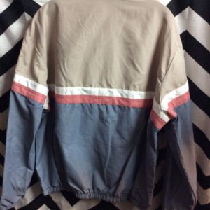 STARTING POINT JACKET – ZIP-UP – HORIZONTAL STRIPE PRINT – COLOR BLOCK DESIGN – SOLID STRIP ACROSS SHOULDERS – SOLID COLLAR & LOWER HALF