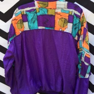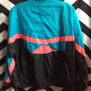 JORDACHE SPORT WINDBREAKER JACKET, NYLON, ZIP-UP, COLOR BLOCK DESIGN W/SOLID COLOR & FUNKY PRINT