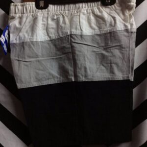 OCEAN BREEZE SWIM SHORTS – ELASTIC WAIST – HORIZONTAL COLOR BLOCK DESIGN – *DEADSTOCK