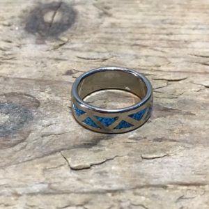 SILVER PLATED RING WITH CRUSHED TURQUOISE STONES