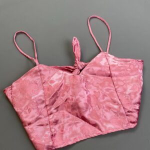 *SAMPLE* *LOCAL BRAND* MADE IN USA CUT-OUT HALTER TOP PINK SATIN ROSE JACQUARD