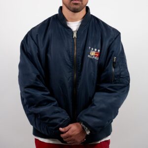 1990S MADE IN USA TOMMY HILFIGER EMBROIDERED AVIATOR BOMBER JACKET